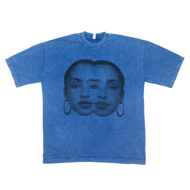 Classic GuGo Illustration of our favorite queen on an Indigo LA Apparel Garment dyed and Mineral washed tee giving it a distinct marbled look.